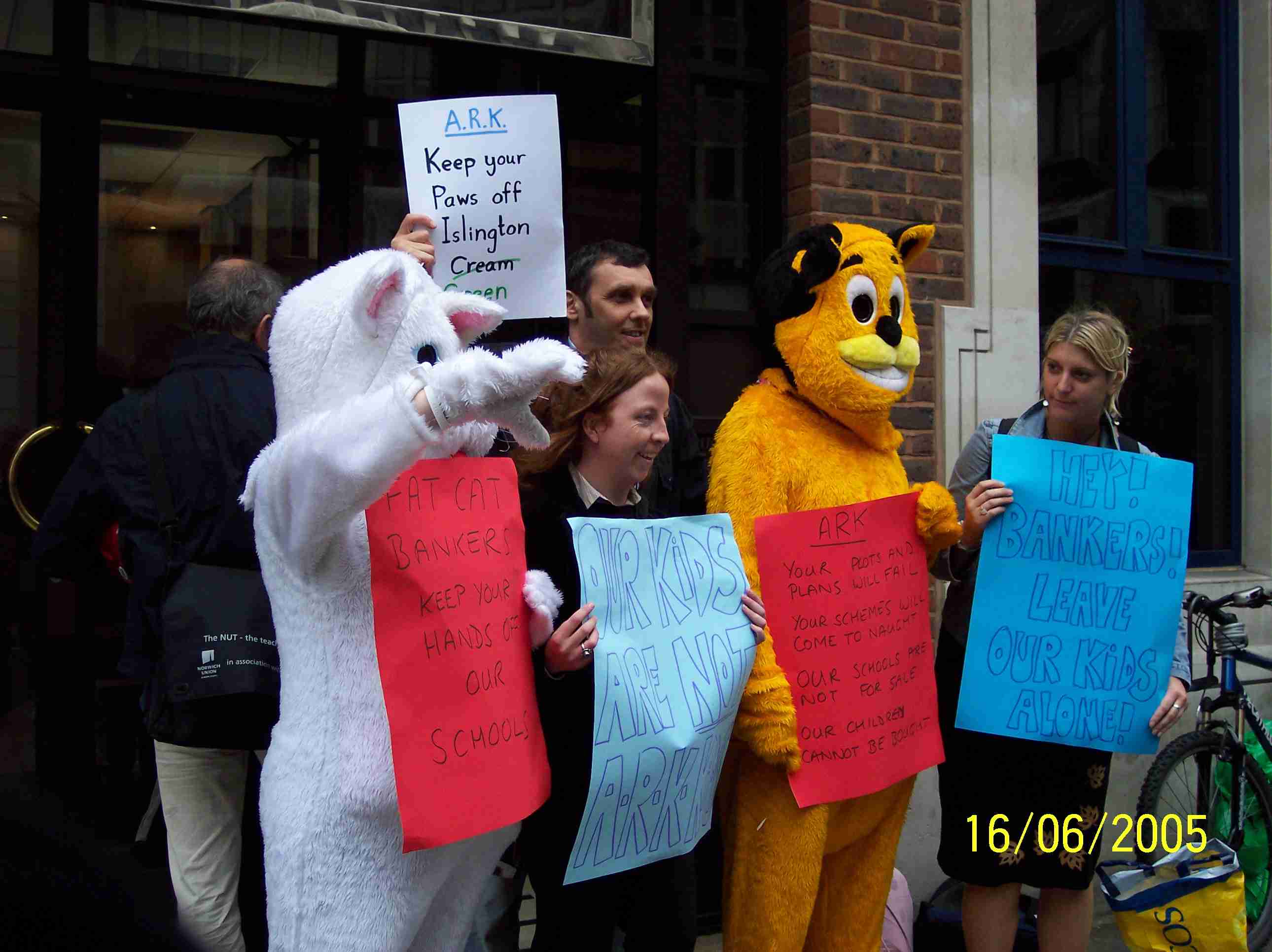 This page links to the pictures used on this site and shows some of the history of the campaign against city academies in Islington. Click on a picture to open it in a new window.